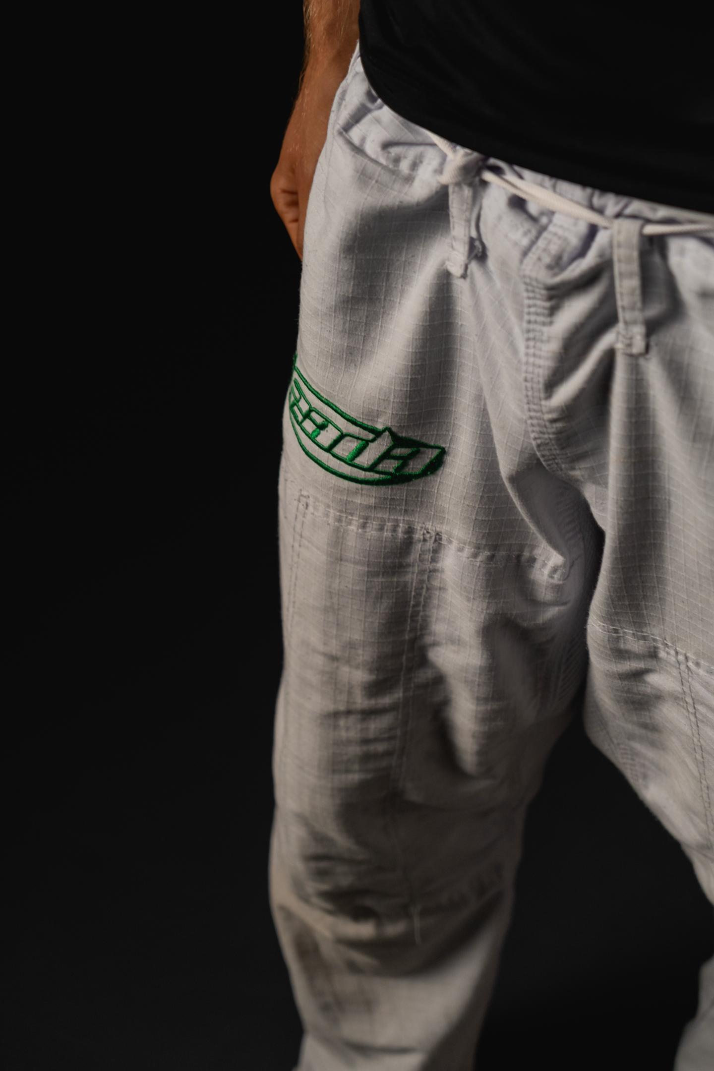 Com gramatura de 750g/m² no tecido Wagui, oferece alta resistência sem comprometer a leveza nos movimentos. A calça em Rip Stop conta com reforços estratégicos nos pontos de maior exigência, enquanto a gola e as mangas também recebem acabamento em Rip Stop 240g/m², garantindo durabilidade onde mais importa.